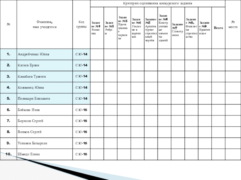 ИНТЕЛЛЕКТУАЛЬНЫЙ КОНКУРСЛучший по специальности «Техник-строитель»