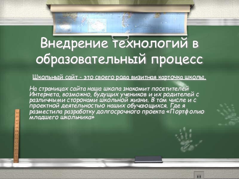 На страницах сайта наша школа знакомит посетителей Интернета, возможно, будущих учеников и их родителей с различными сторонами школьной жизни. В том числе и с проектной деятельностью наших обучающихся. Где я разместила разработку долгосрочного проекта «Портфолио младшего школьника»