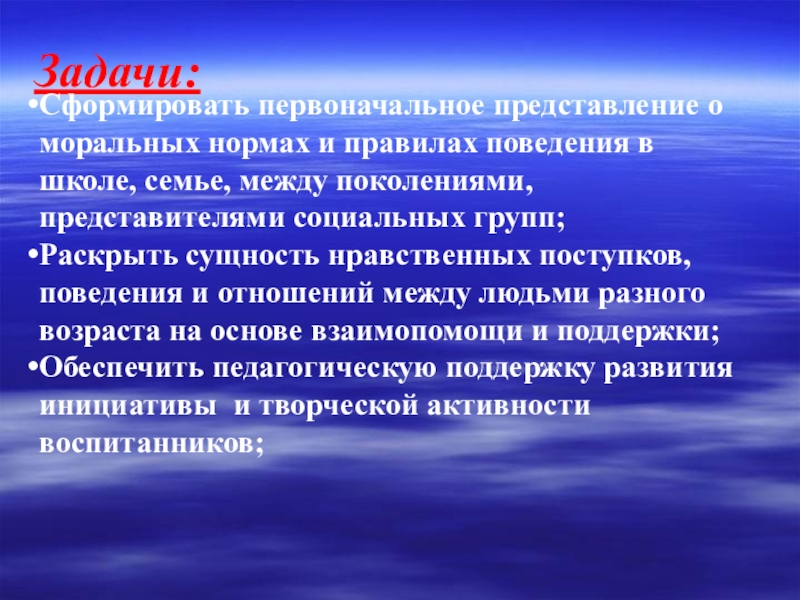 Раскрыть сущность нравственных поступков, поведения и отношений между людьми разного возраста на основе взаимопомощи и поддержки;