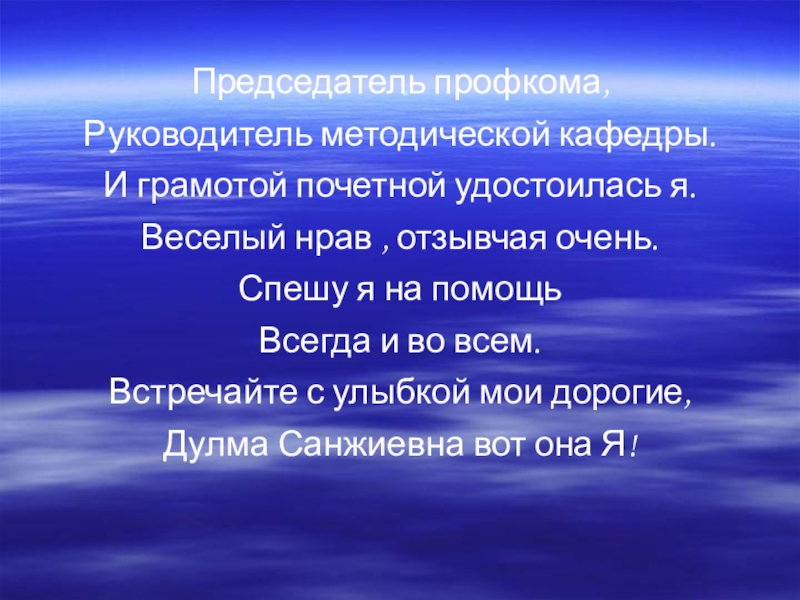 Дулма Санжиевна вот она Я!