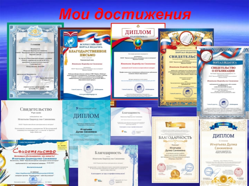 Свидетельства и сертификаты о публикации методических разработок на различных образовательных сайтах.