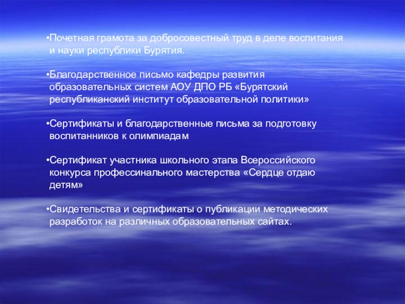 Благодарственное письмо кафедры развития образовательных систем АОУ ДПО РБ «Бурятский республиканский институт образовательной политики»
