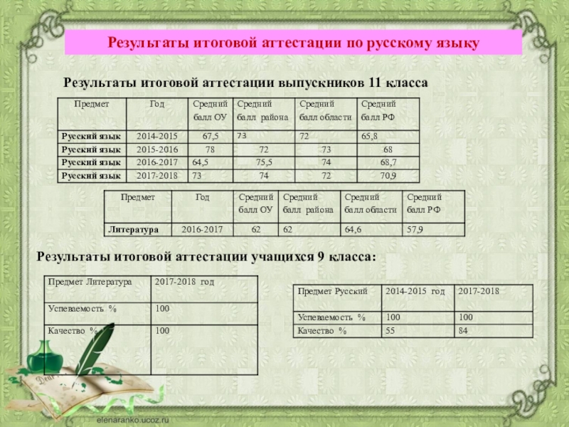 Результаты итоговой аттестации учащихся 9 класса: