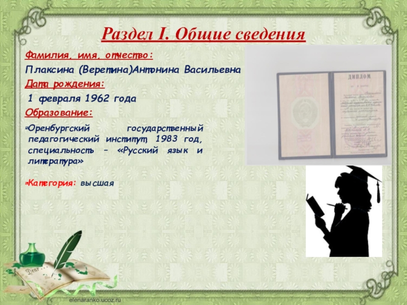 Оренбургский государственный педагогический институт, 1983 год, специальность – «Русский язык и литература»