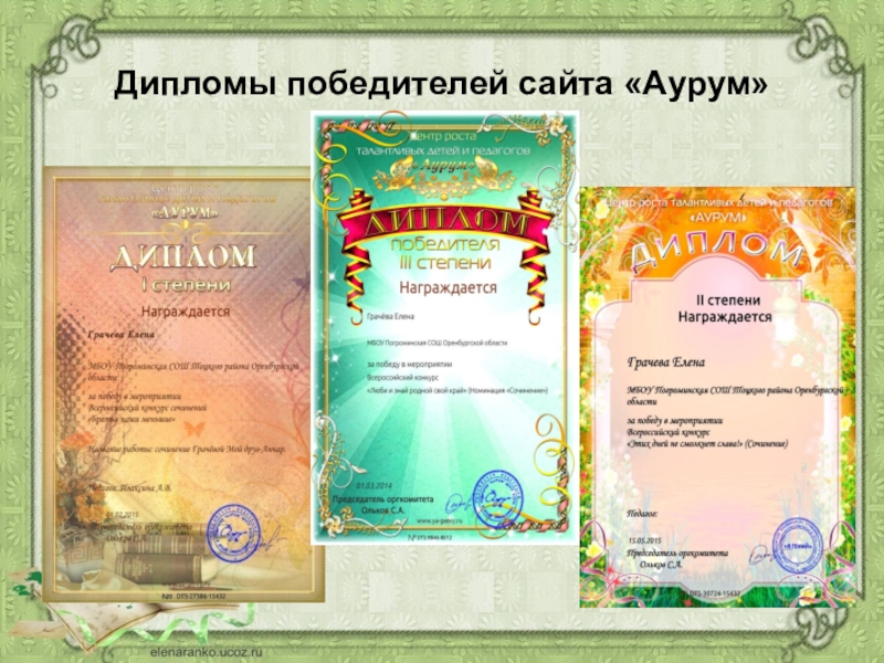 Диплом от Центра роста талантливых детей и педагогов 2015 г.