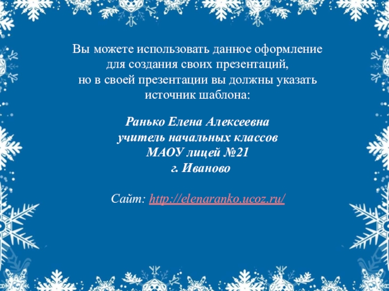 Вы можете использовать данное оформление для создания своих презентаций, но в своей презентации вы должны указать источник