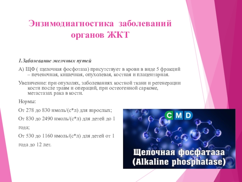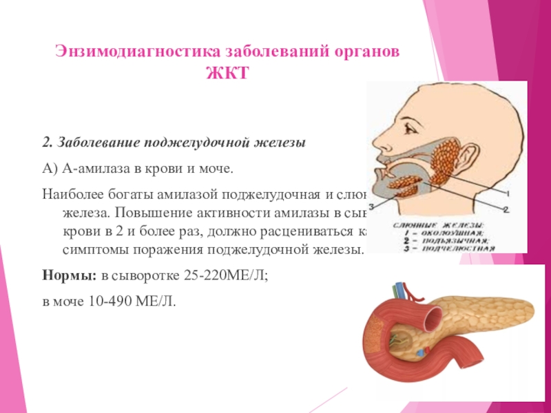 Слайд 15Энзимодиагностика заболеваний органов ЖКТ