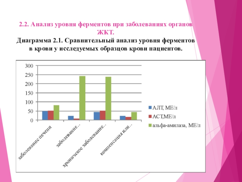 2.2. Анализ уровня ферментов при заболеваниях органов ЖКТ.