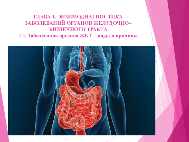 Слайд 5ГЛАВА 1. ЭНЗИМОДИАГНОСТИКА ЗАБОЛЕВАНИЙ ОРГАНОВ ЖЕЛУДОЧНО–КИШЕЧНОГО ТРАКТА
