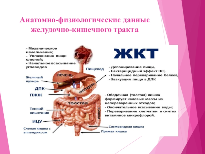 Слайд 6Анатомно-физиологические данные желудочно-кишечного тракта