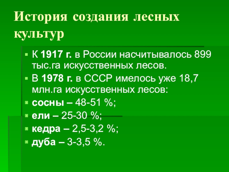 В 1978 г. в СССР имелось уже 18,7 млн.га искусственных лесов: