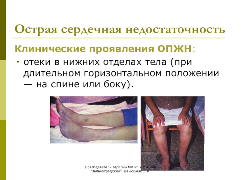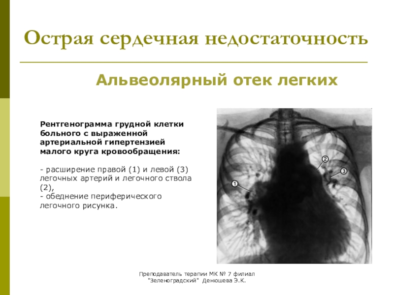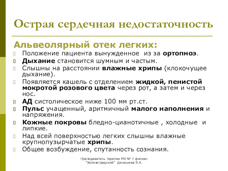 Острая сердечная недостаточность (отек легких) - основная причина смерти больных с ИМ в стационаре. Трудности ранней диагностики ОЛЖН.