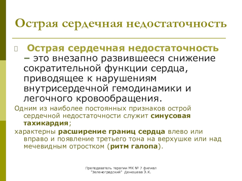 Одним из наиболее постоянных признаков острой сердечной недостаточности служит синусовая тахикардия;