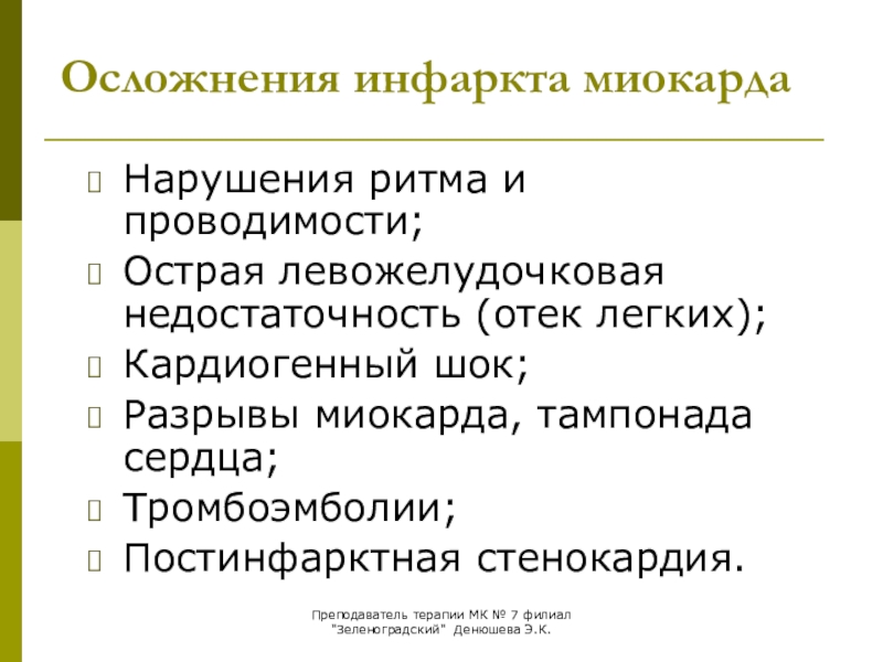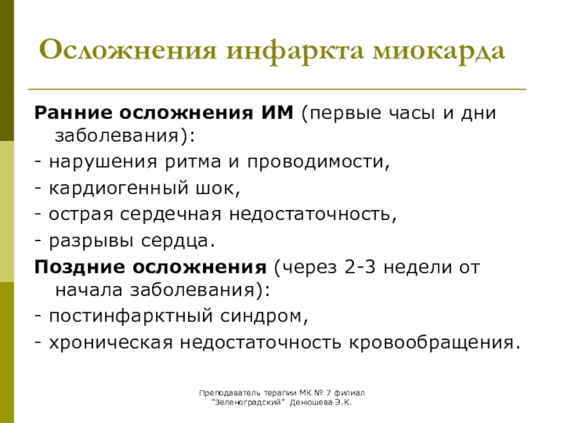 алгоритм оказания доврачебной помощи при осложнениях ИМ.
