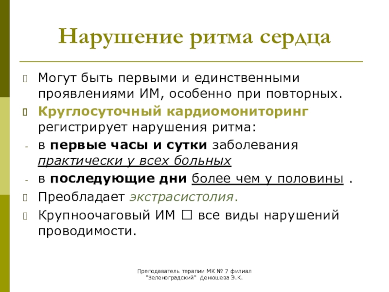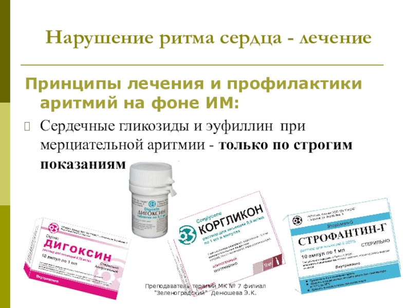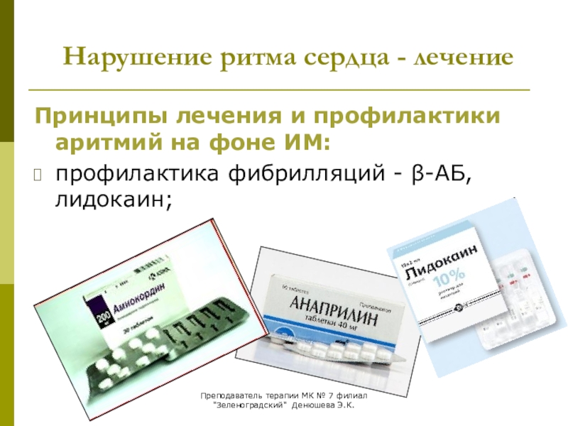 Принципы лечения и профилактики аритмий на фоне ИМ:
