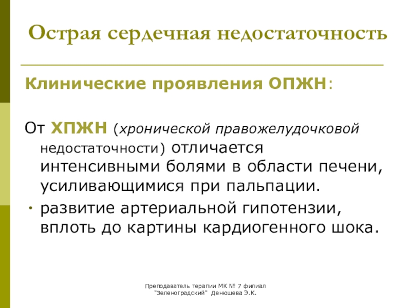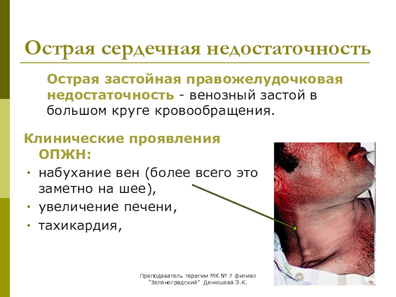 Острая застойная правожелудочковая недостаточность - венозный застой в большом круге кровообращения.