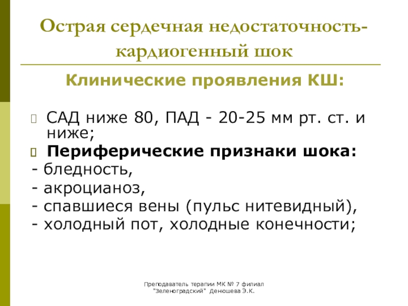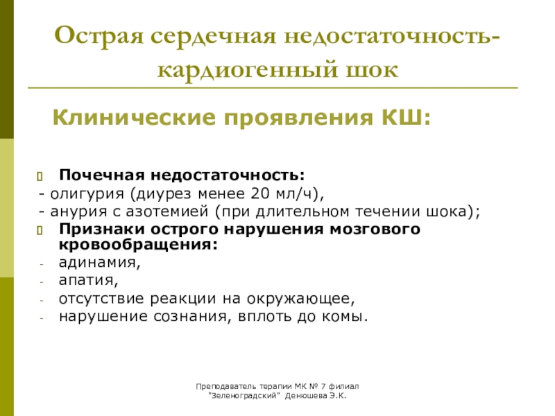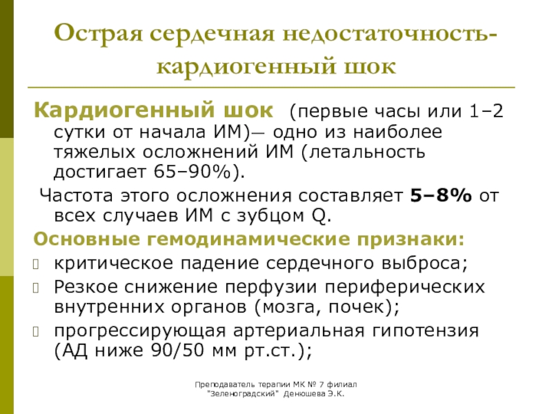 Кардиогенный шок – ведущая причина смерти больных ИМ. Прогноз при развернутой картине шока.
