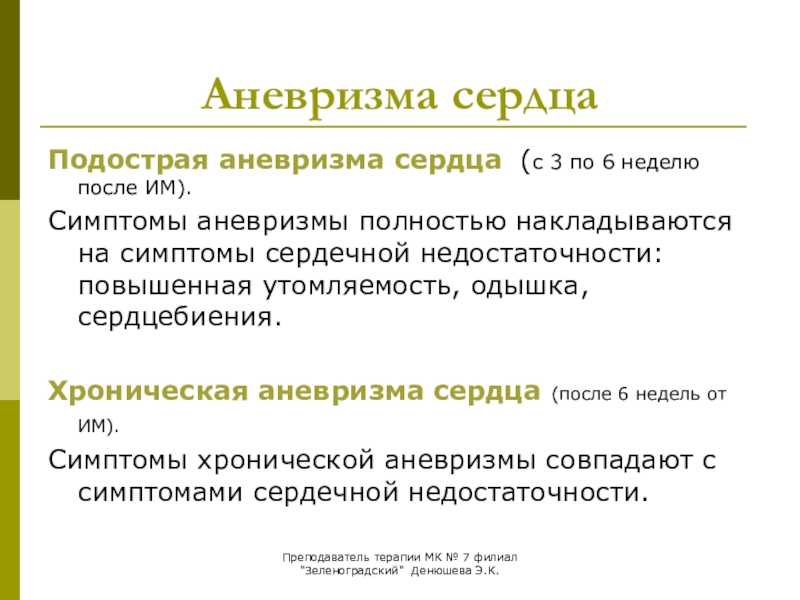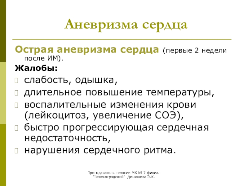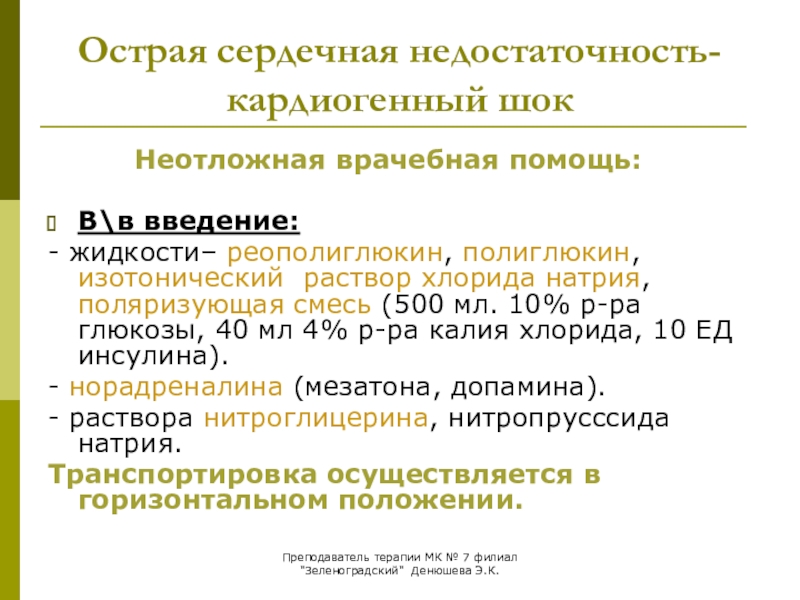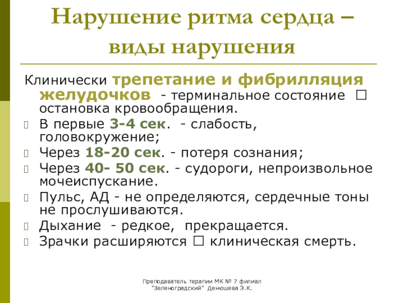 Преподаватель терапии МК № 7 филиал "Зеленоградский" Денюшева Э.К.