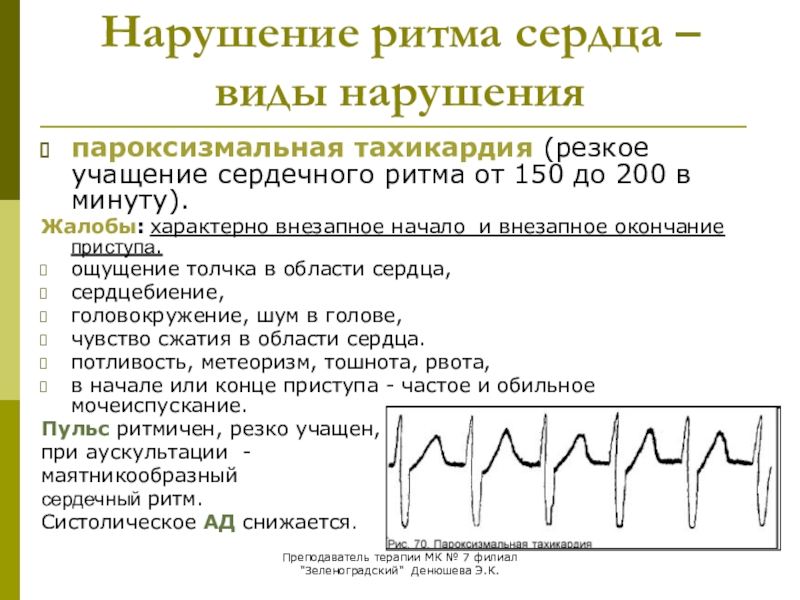пароксизмальная тахикардия (резкое учащение сердечного ритма от 150 до 200 в минуту).