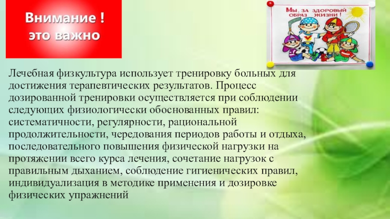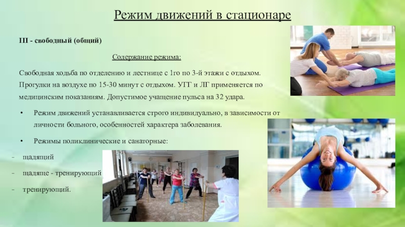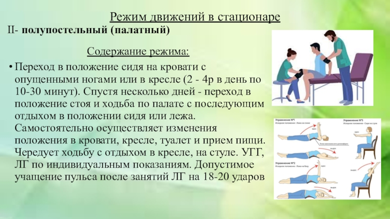 Малогрупповой метод (3-5 человек) проводится с больными, объединенными по принципу единого заболевания_(терапевтические, травматологические и т.д.). Занятия проводят в проветренных палатах.