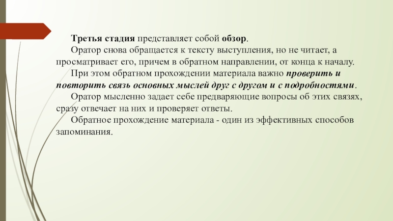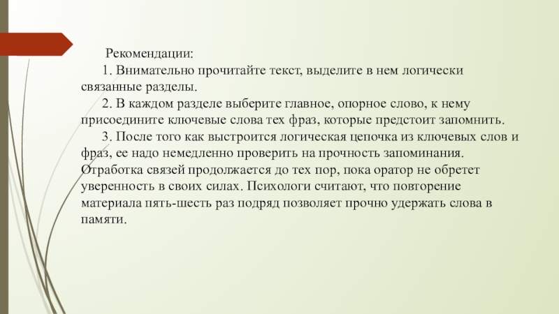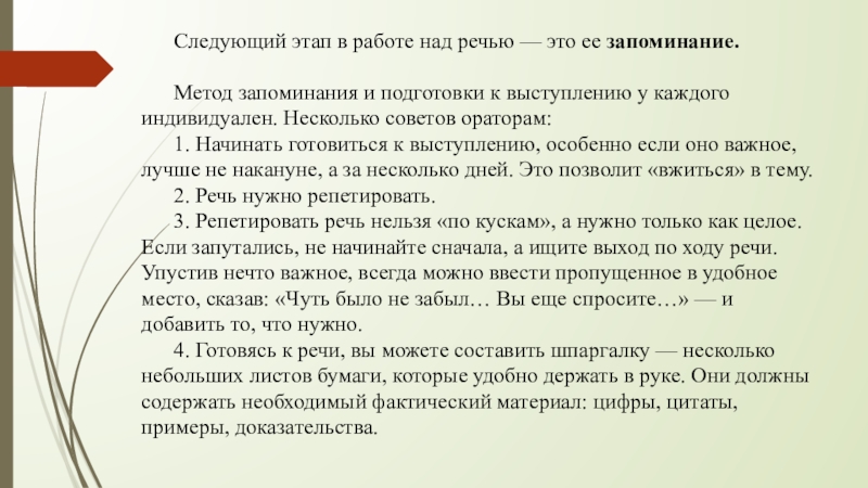 Слайд 3 Следующий этап в работе над речью — это ее запоминание.