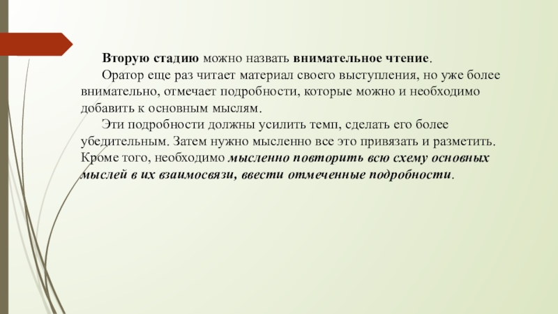 Слайд 14 Вторую стадию можно назвать внимательное чтение.