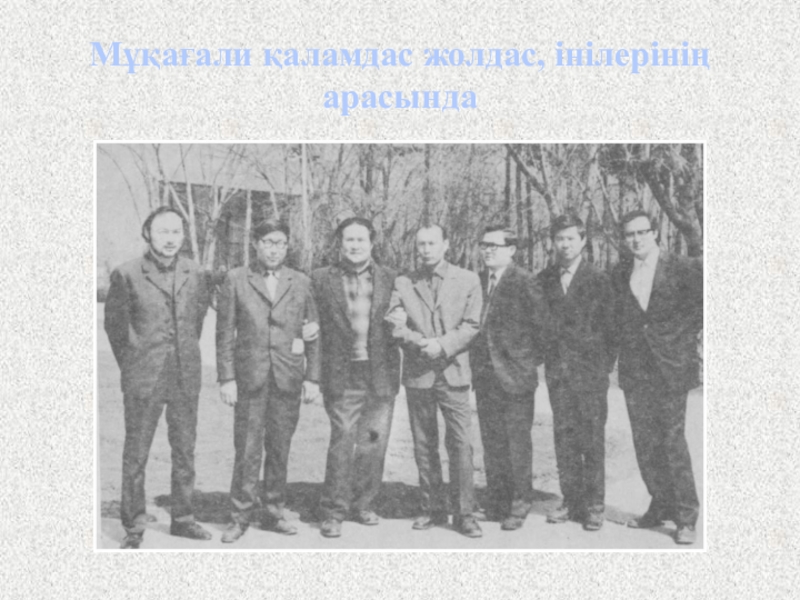 Слайд 24Мұқағали қаламдас жолдас, інілерінің арасында