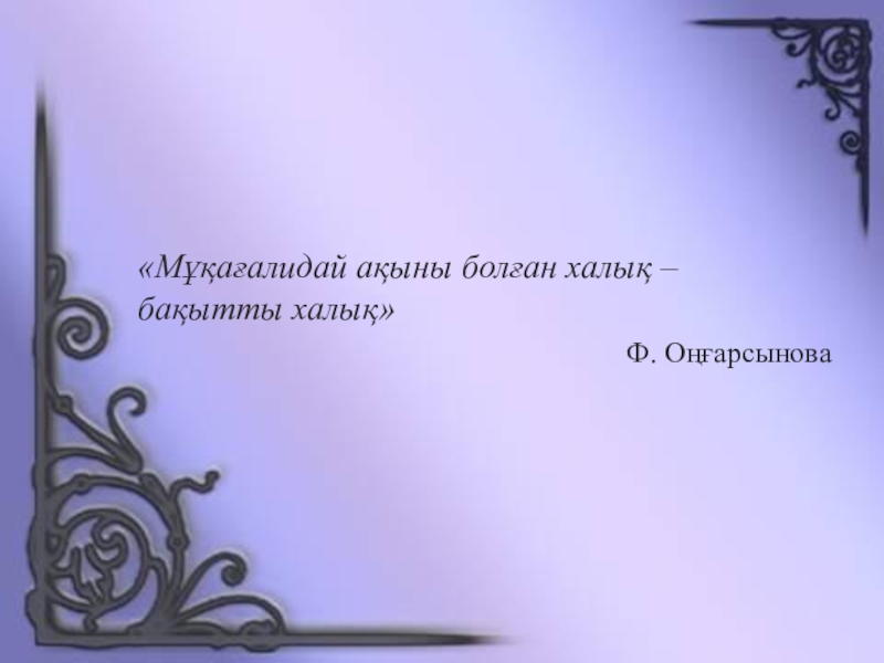 «Мұқағалидай ақыны болған халық – бақытты халық»Ф. Оңғарсынова