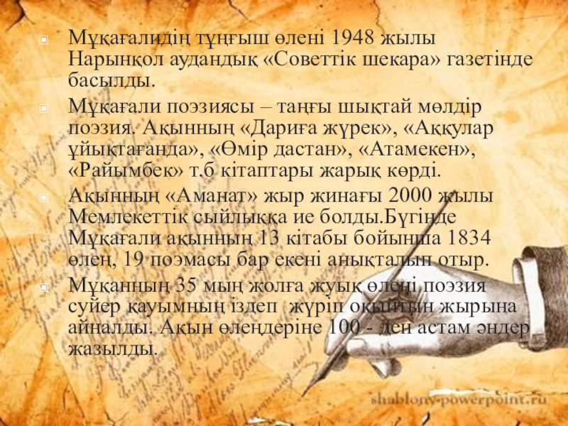 Презентация, доклад к литературному вечеру Мұқағали - мәңгілік ғұмыр