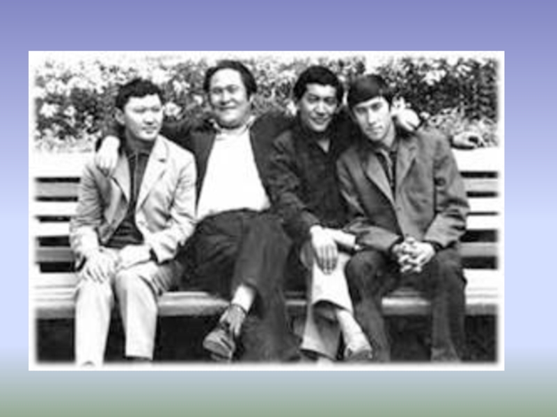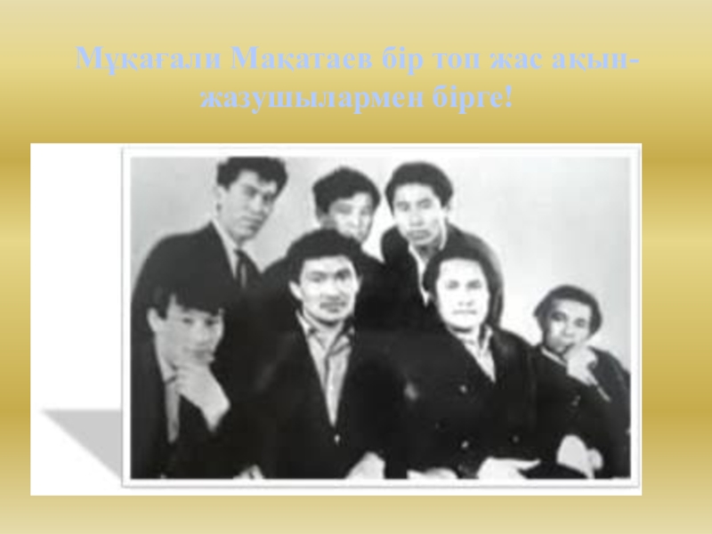 Слайд 18Мұқағали Мақатаев бір топ жас ақын-жазушылармен бірге!