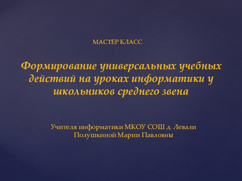 Учителя информатики МКОУ СОШ д. Левали Полушкиной Марии Павловны