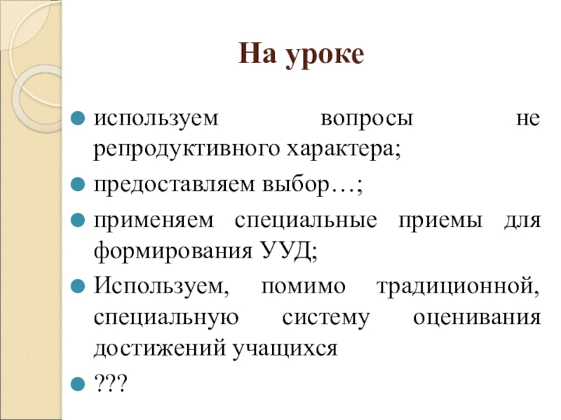применяем специальные приемы для формирования УУД;