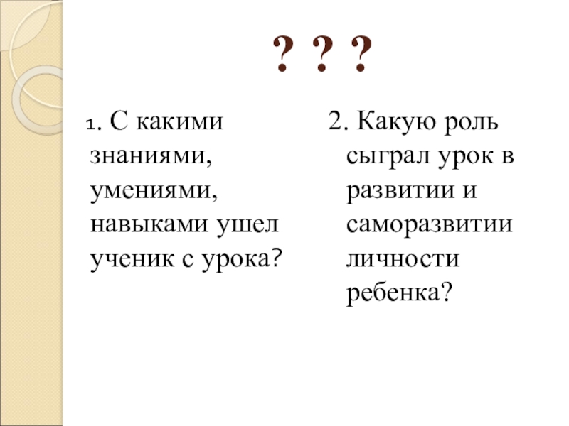 2. Какую роль сыграл урок в развитии и саморазвитии личности ребенка?