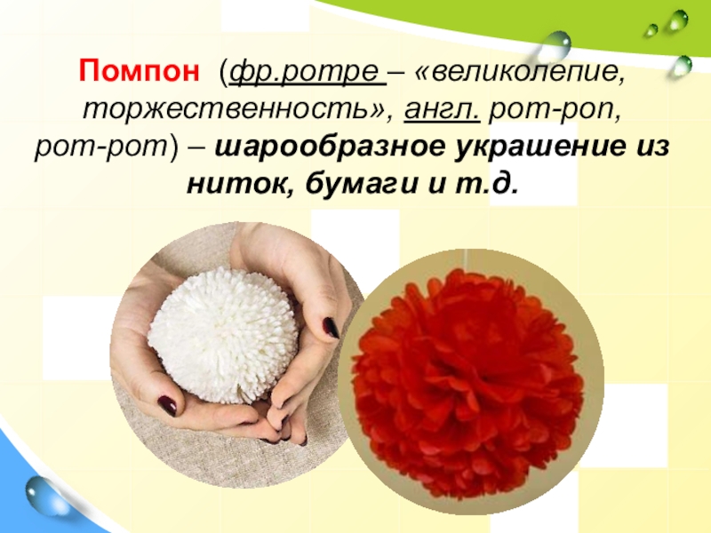 Слайд 2Помпон (фр.pompe – «великолепие,