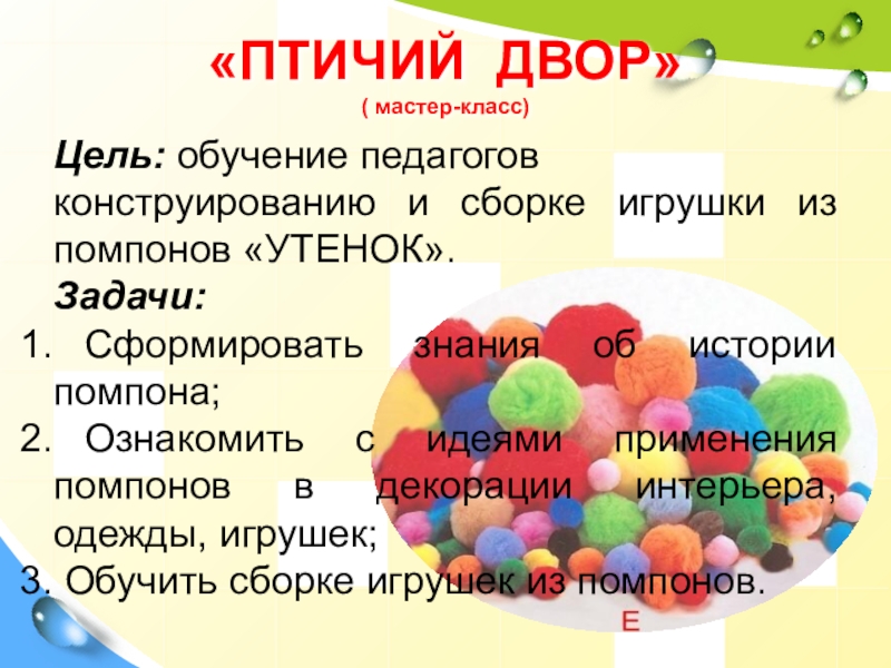 конструированию и сборке игрушки из помпонов «УТЕНОК».