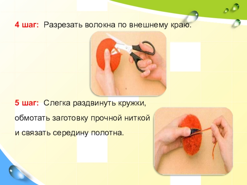 Слайд 316 шаг: Снять картонные шаблоны, подровнять помпон ножницами.