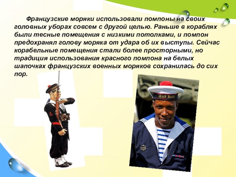 Слайд 4 Французские моряки использовали помпоны на своих