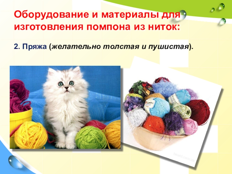 Слайд 24Оборудование наглядные материалы: клубочки