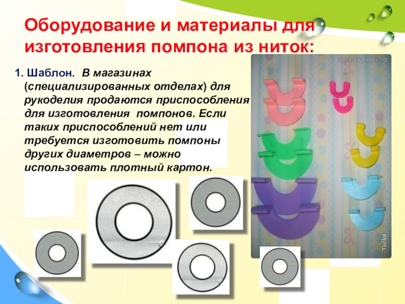 Слайд 21Оборудование и материалы для изготовления помпона из ниток: