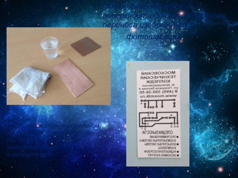 Фотошаблон задан в зеркальном отображении, для того чтобы