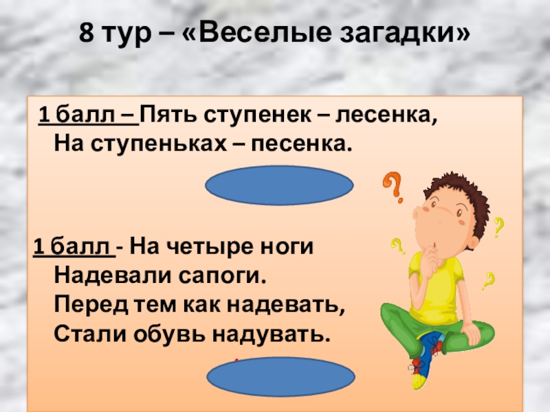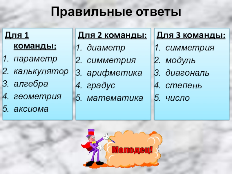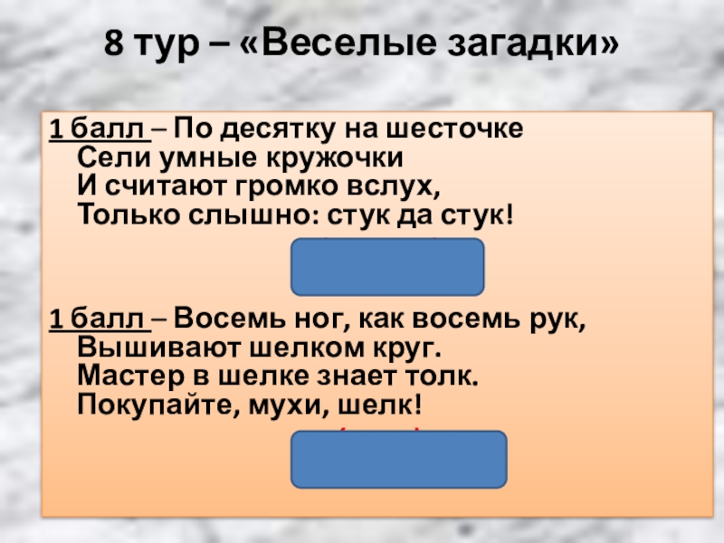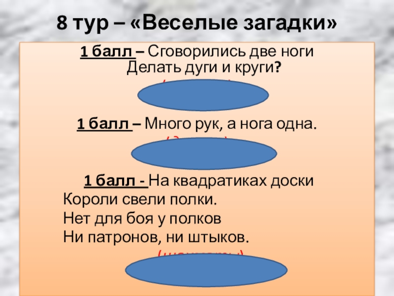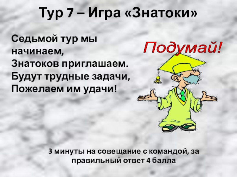 3 минуты на совещание с командой, за правильный ответ 4 балла