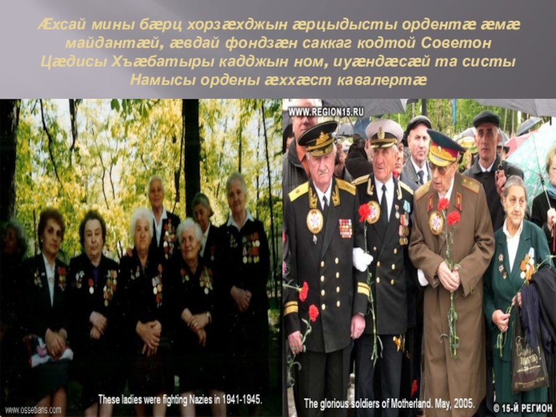 Слайд 4Æхсай мины бæрц хорзæхджын æрцыдысты ордентæ æмæ майдантæй, æвдай фондзæн саккаг