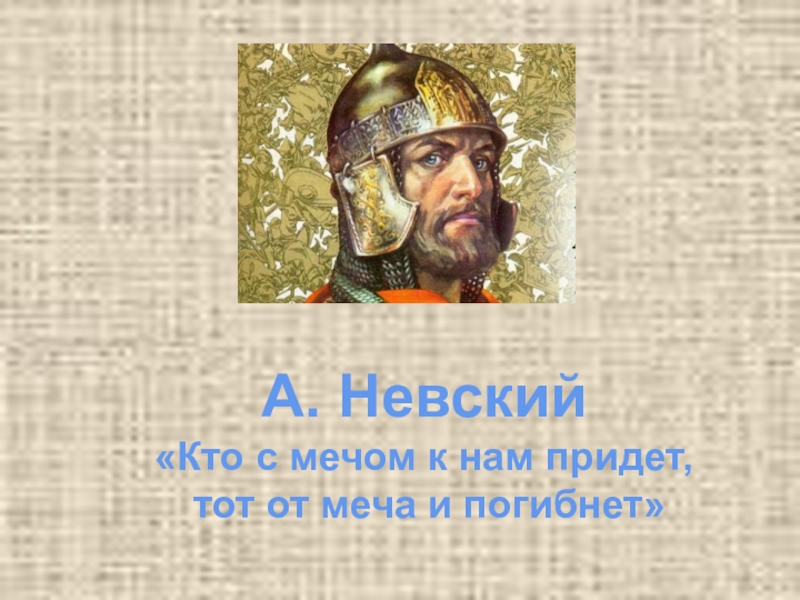А. Невский«Кто с мечом к нам придет, тот от меча и погибнет»