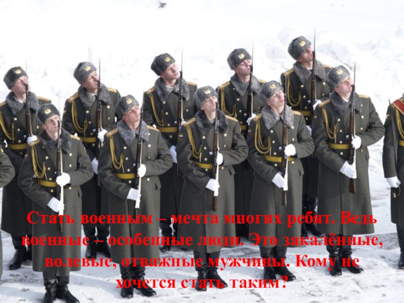 Стать военным – мечта многих ребят. Ведь военные – особенные люди.