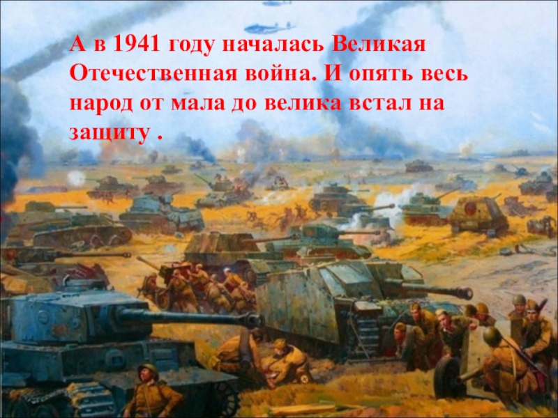 Слайд 7А в 1941 году началась Великая Отечественная война. И опять весь