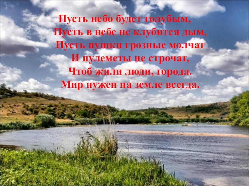 Пусть небо будет голубым,  Пусть в небе не клубится дым,  Пусть пушки грозные молчат