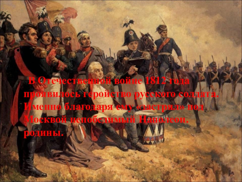 .   В Отечественной войне 1812 года проявилось геройство русского солдата. Именно благодаря ему «застрял» под