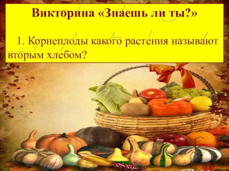 Викторина «Знаешь ли ты?»  1. Корнеплоды какого растения называют вторым хлебом?