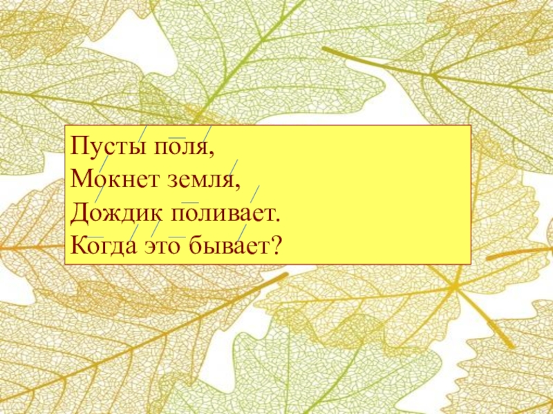 Пусты поля,Мокнет земля,Дождик поливает.Когда это бывает?