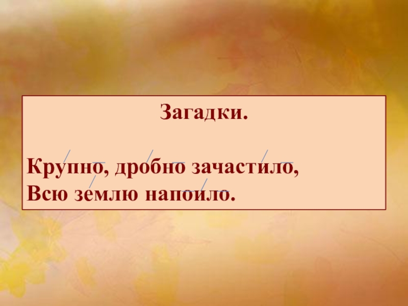 Загадки.Крупно, дробно зачастило,Всю землю напоило.
